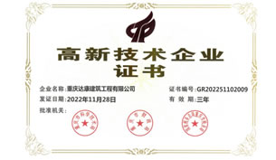 喜訊,重慶達(dá)康建筑工程有限公司順利通過(guò)重慶市科學(xué)技術(shù)局、重慶市財(cái)政局、國(guó)家稅務(wù)總局重慶市稅務(wù)局等部門的聯(lián)合評(píng)審驗(yàn)收,被正式認(rèn)定為“高新技術(shù)企業(yè)”,榮獲《高新技術(shù)企業(yè)證書》。